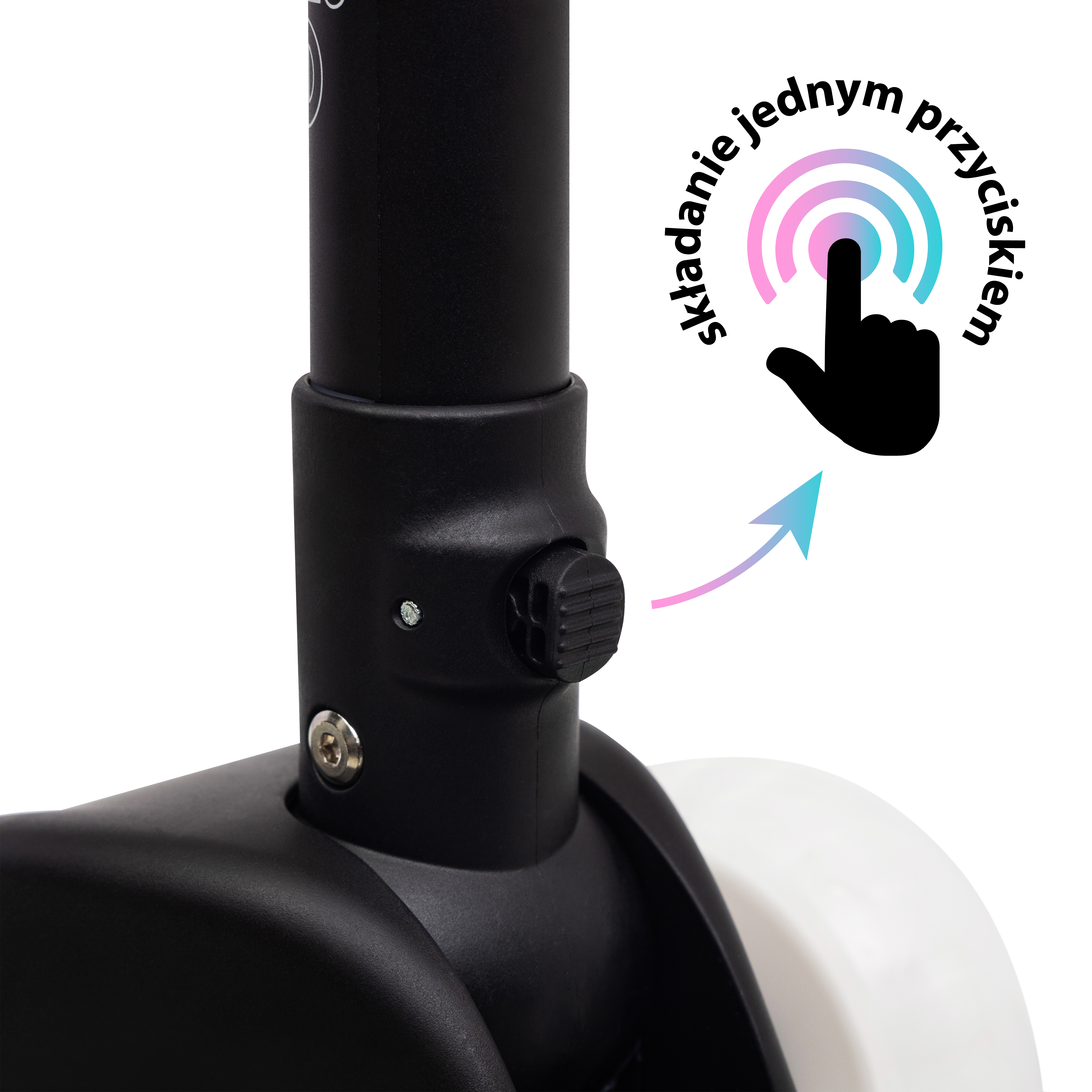 Składany mechanizm pozwala szybko złożyć hulajnogę jednym ruchem. Z łatwością zabierzesz ją: • do samochodu • na wakacje • do przedszkola • do znajomych Złożona zajmuje bardzo mało miejsca. |