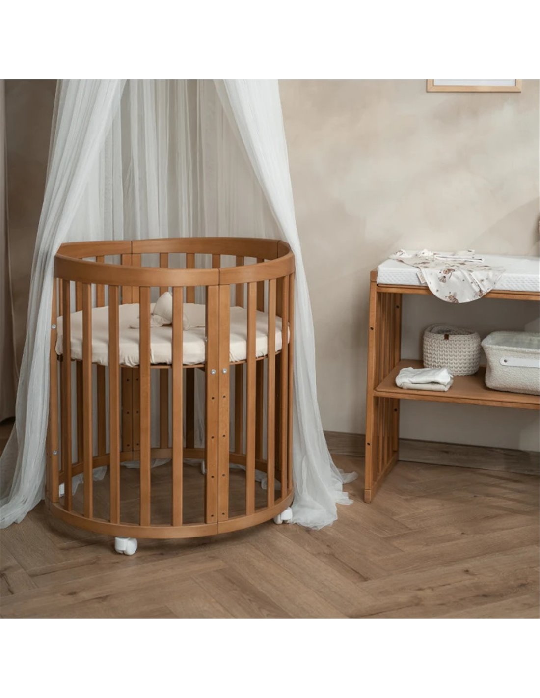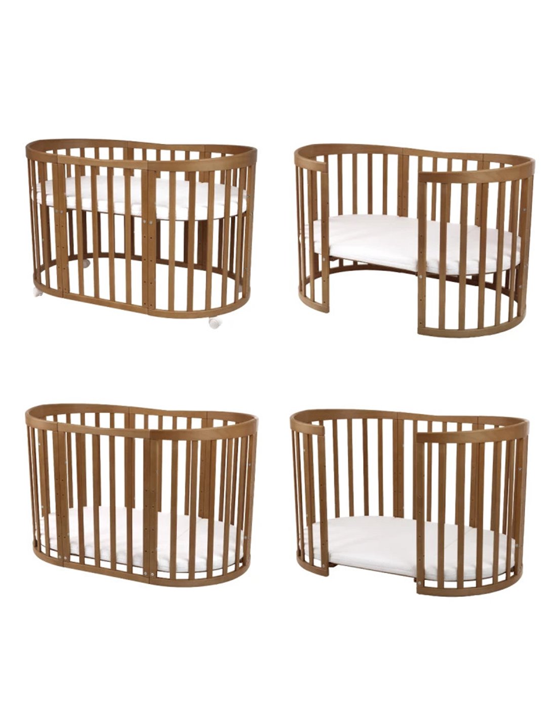Owalne łóżeczko 7w1 zostało zaprojektowane z myślą o długotrwałym użytkowaniu. Od narodzin dziecka, przez pierwsze lata jego życia, aż do wieku szkolnego, nasze łóżeczko dostosowuje się do potrzeb rosnącego malucha.