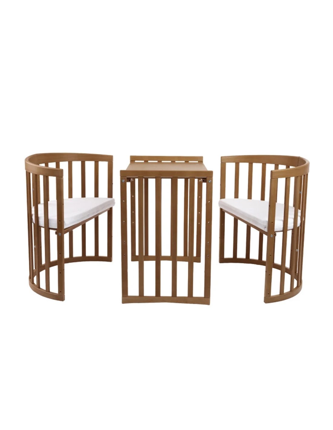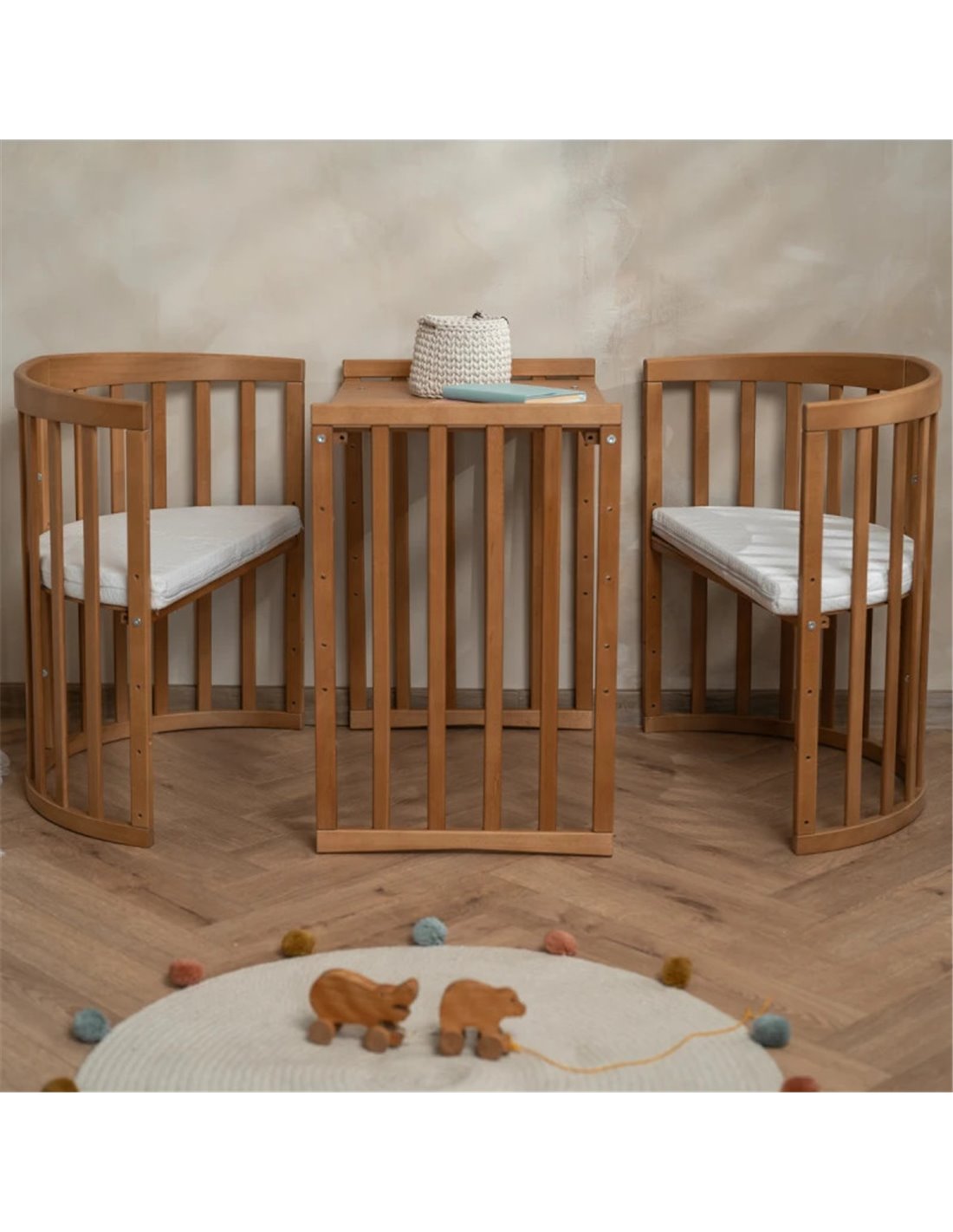 Dla starszych dzieci, łóżeczko można przekształcić w zestaw składający się ze stolika i dwóch krzesełek. Regulowana wysokość siedzisk i blatu pozwala stworzyć idealny kącik do nauki lub zabawy. Dodatkowo, dzięki rozszerzeniom, łóżeczko może być używane nawet do 10 roku życia dziecka.