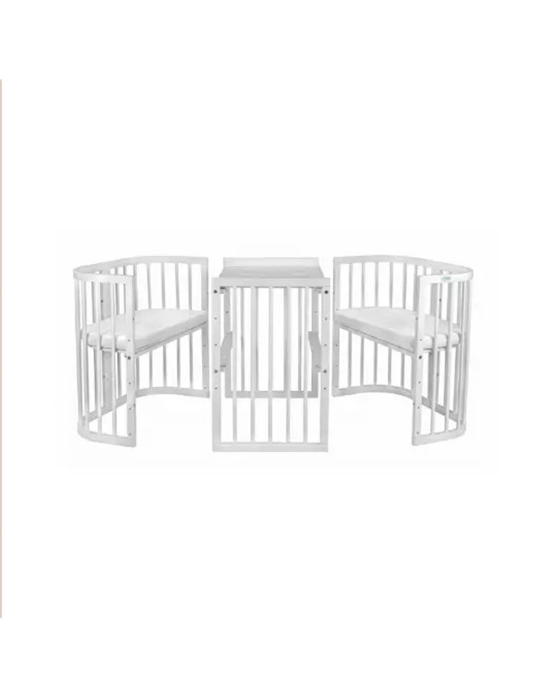 Dla starszych dzieci, łóżeczko można przekształcić w zestaw składający się ze stolika i dwóch krzesełek. Regulowana wysokość siedzisk i blatu pozwala stworzyć idealny kącik do nauki lub zabawy. Dodatkowo, dzięki rozszerzeniom, łóżeczko może być używane nawet do 10 roku życia dziecka.