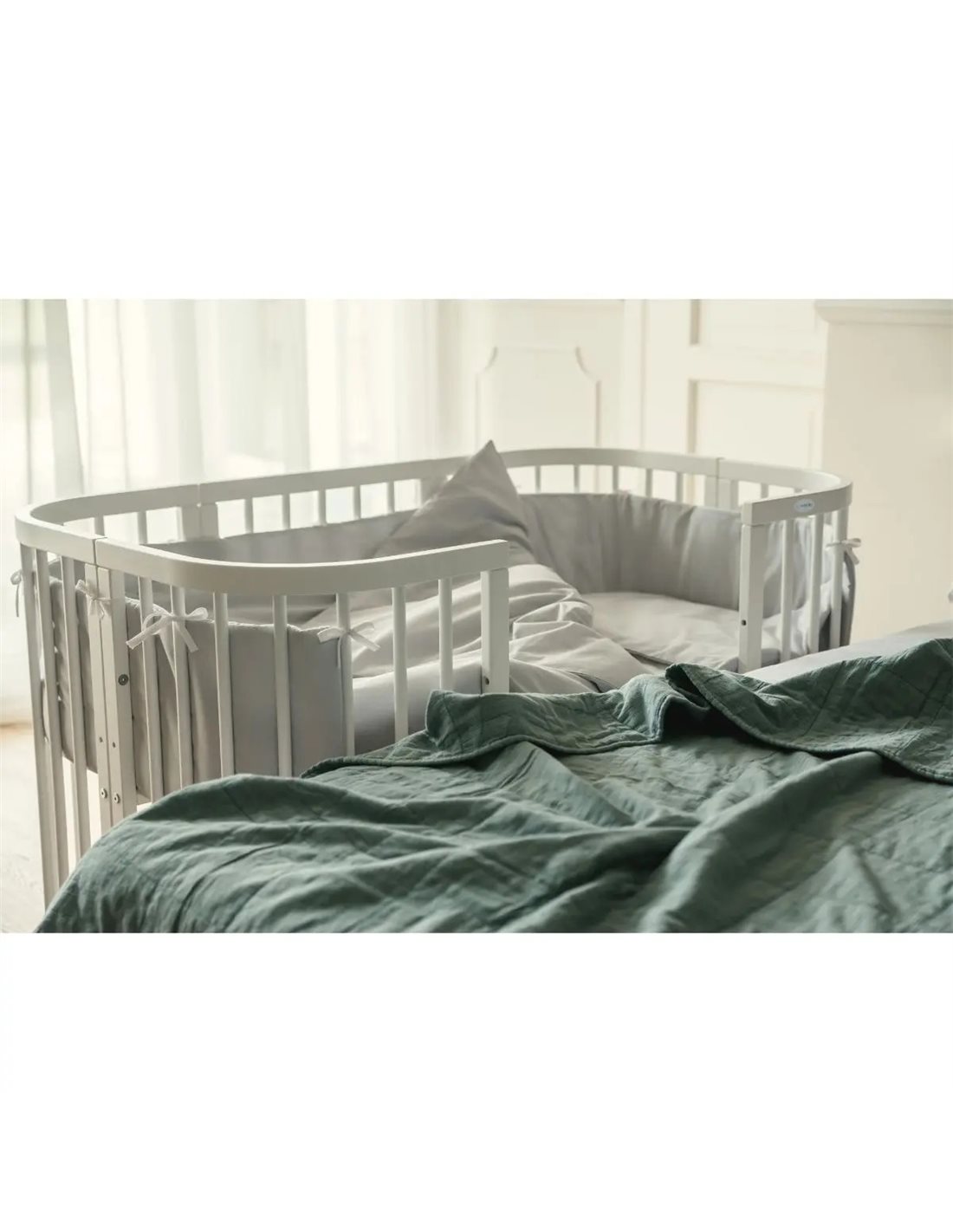Waldin Owalne Łóżeczko 7w1 to wielofunkcyjny mebel, który rośnie razem z Twoim dzieckiem, zapewniając mu komfort i bezpieczeństwo od pierwszych dni życia aż do 10. roku życia. Dzięki starannie wyselekcjonowanym materiałom, solidnej konstrukcji i eleganckiemu designowi, nasze łóżeczko jest inwestycją na lata.