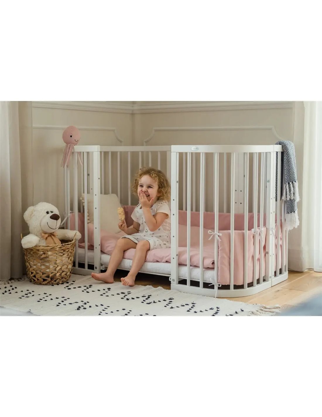 Owalne łóżeczko 7w1 zostało zaprojektowane z myślą o długotrwałym użytkowaniu. Od narodzin dziecka, przez pierwsze lata jego życia, aż do wieku szkolnego, nasze łóżeczko dostosowuje się do potrzeb rosnącego malucha.