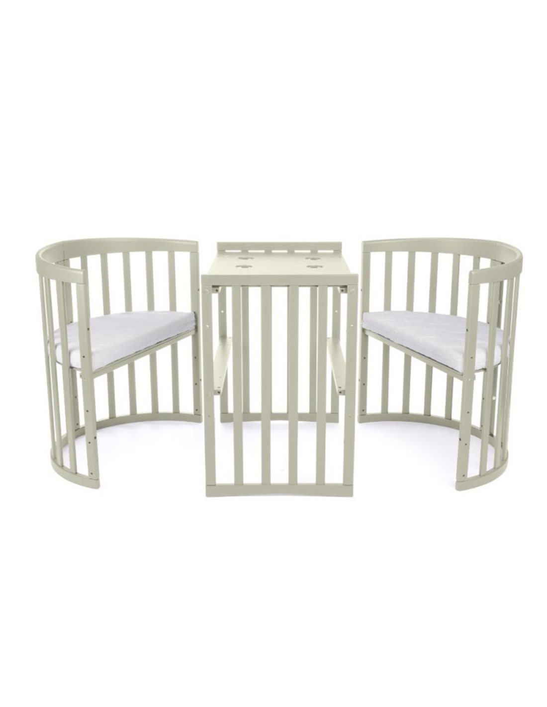 Dla starszych dzieci, łóżeczko można przekształcić w zestaw składający się ze stolika i dwóch krzesełek. Regulowana wysokość siedzisk i blatu pozwala stworzyć idealny kącik do nauki lub zabawy. Dodatkowo, dzięki rozszerzeniom, łóżeczko może być używane nawet do 10 roku życia dziecka.