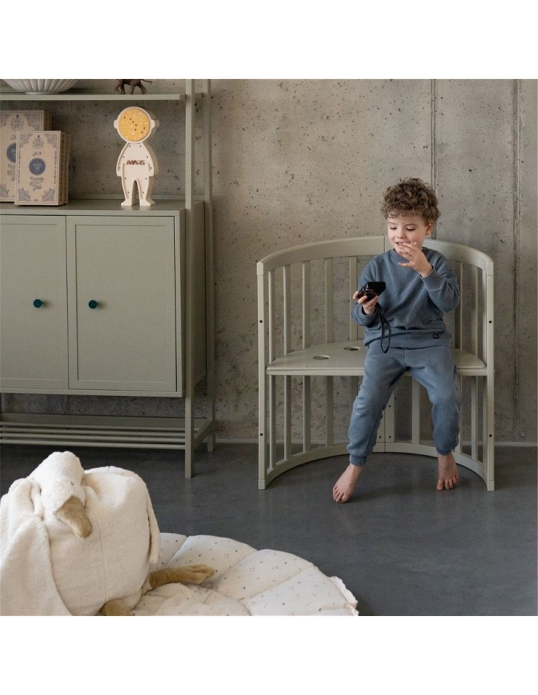 Owalne łóżeczko 7w1 zostało zaprojektowane z myślą o długotrwałym użytkowaniu. Od narodzin dziecka, przez pierwsze lata jego życia, aż do wieku szkolnego, nasze łóżeczko dostosowuje się do potrzeb rosnącego malucha.
