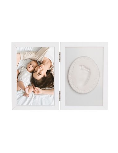 Podwójna ramka z glinką do odcisku bobasa to uroczy zestaw pamiątkowy, dzięki któremu w prosty i bezpieczny sposób zachowasz wspomnienie pierwszych dni życia Twojego dziecka. Zestaw pozwala na samodzielne wykonanie odcisku rączki lub stópki maluszka, tworząc wyjątkową pamiątkę, która pozostanie z Wami na lata.