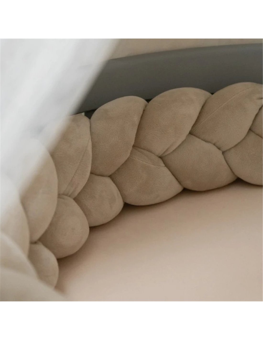 Welurowy warkocz ochraniacz do łóżeczka 210cm – pleciony 3-pasmowy