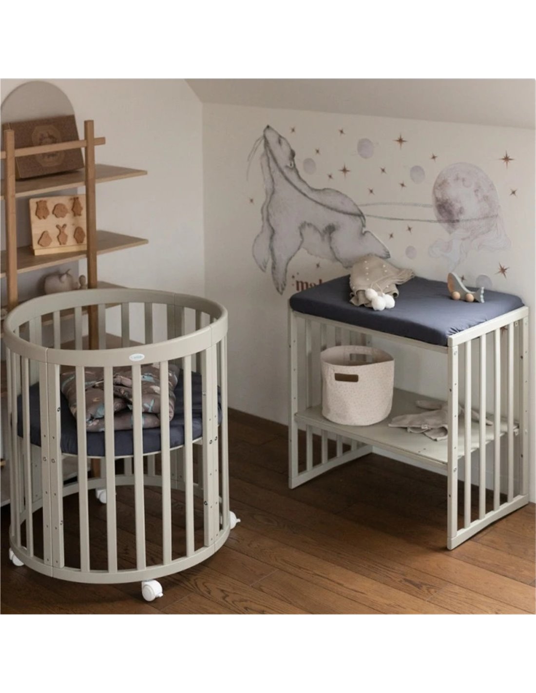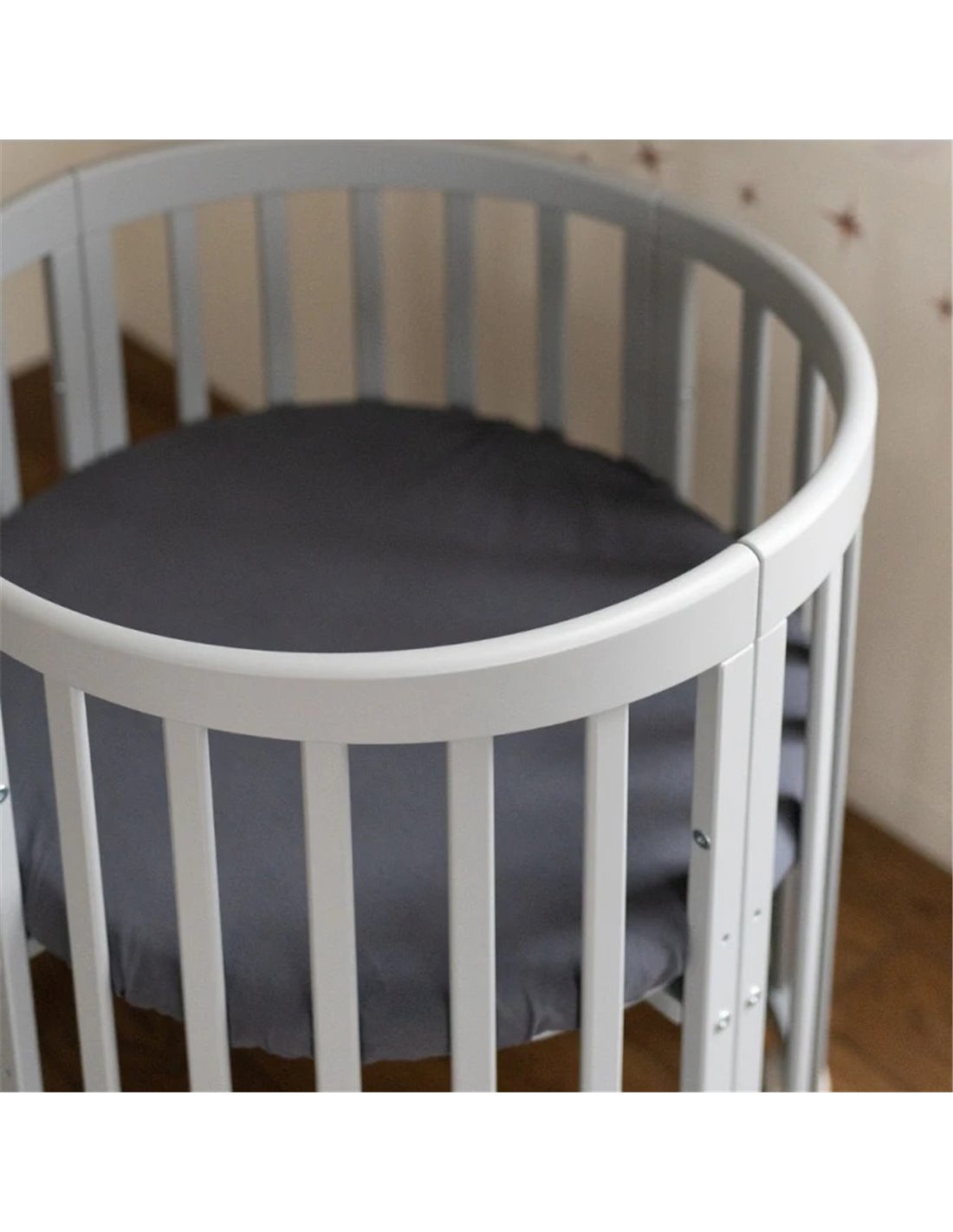 Idealne dopasowanie: prześcieradło skrojone specjalnie pod duży, owalny materac łóżeczka 7w1 Waldin (73 cm).