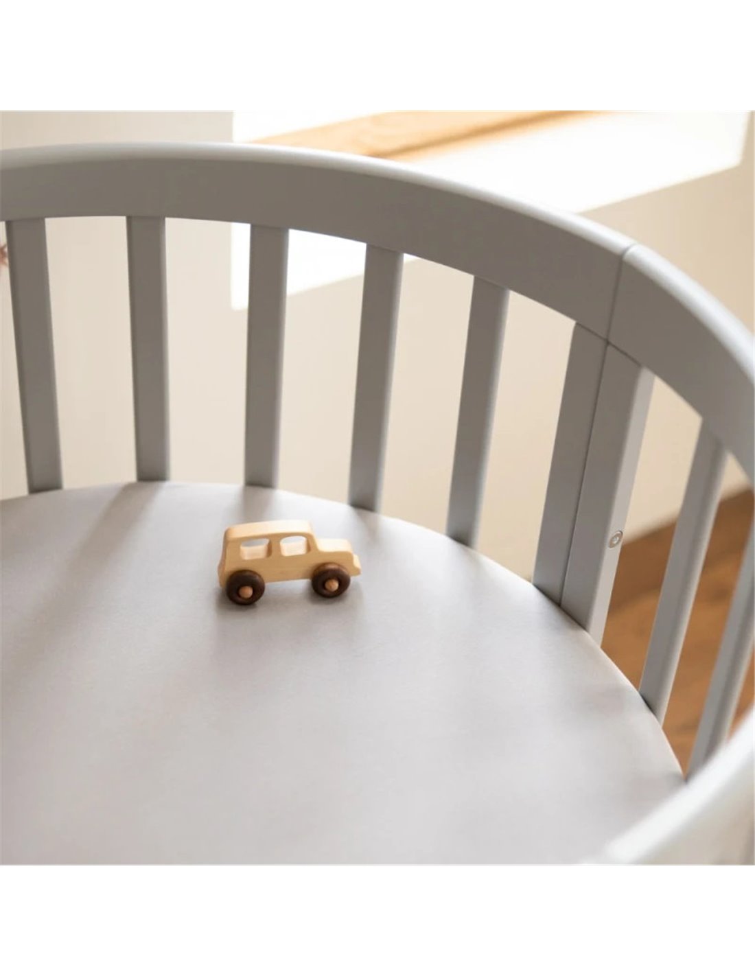 Idealne dopasowanie: prześcieradło skrojone specjalnie pod duży, owalny materac łóżeczka 7w1 Waldin (73 cm).