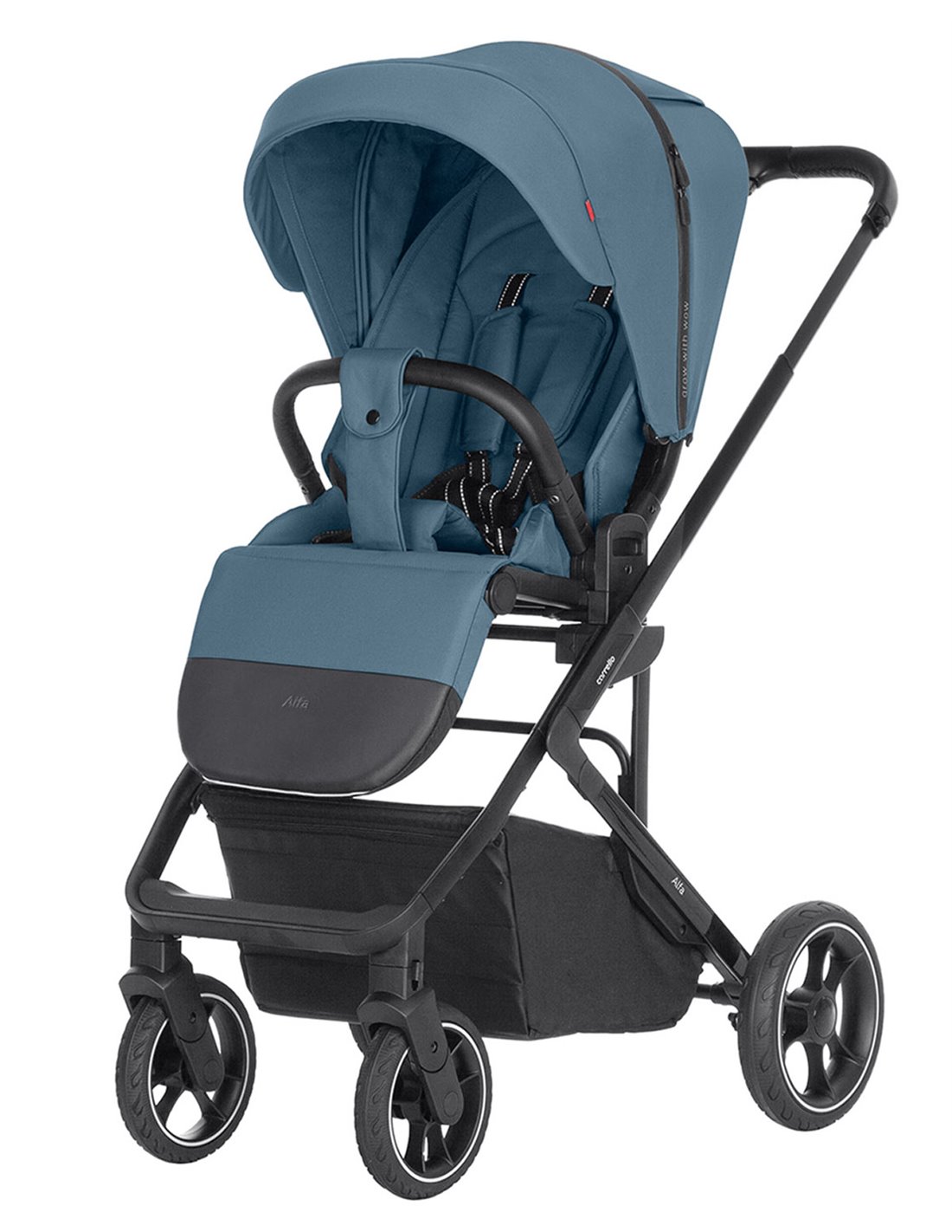 Model Alfa wyposażony jest w zamykany, pojemny kosz na zakupy o maksymalnym obciążeniu do 3 kg, co pozwala na przewożenie niezbędnych akcesoriów dla dziecka. W zestawie znajduje się także uniwersalna moskitiera oraz pokrowiec na nogi, co zapewnia komfortowe spacery o każdej porze roku.