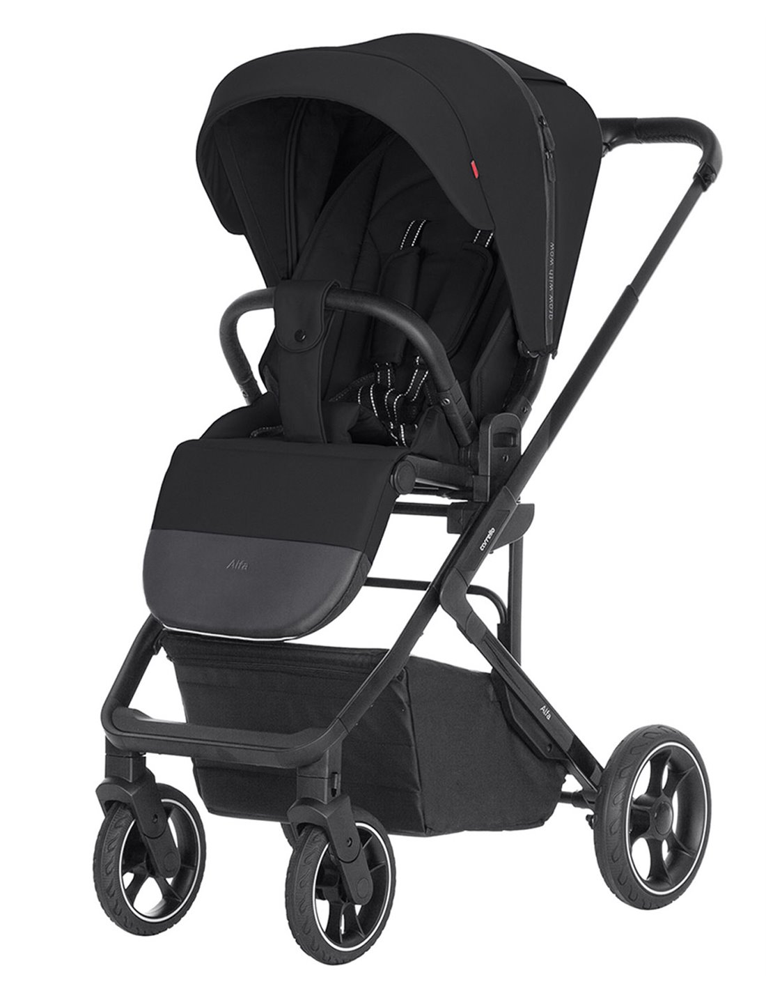 Model Alfa wyposażony jest w zamykany, pojemny kosz na zakupy o maksymalnym obciążeniu do 3 kg, co pozwala na przewożenie niezbędnych akcesoriów dla dziecka. W zestawie znajduje się także uniwersalna moskitiera oraz pokrowiec na nogi, co zapewnia komfortowe spacery o każdej porze roku.